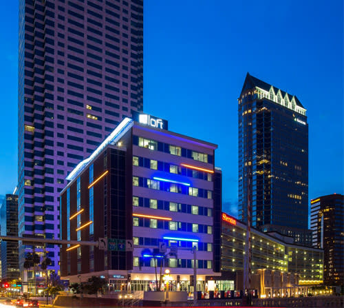 Celebrate your style at Aloft Tampa Downtown, a hip new hotel that’s steps from museums, parks, restaurants, nightlife, sports, and shopping. We offer easy-breezy access to the Riverwalk, the Tampa Convention Center, and the Benchmark International Arena. Breeze into one of our Aloft rooms, featuring our ultra-comfortable signature bed, walk-in shower, custom amenities by Bliss® Spa, and more. Our plug & play connectivity station charges all your electronics and links to the 42” LCD TV to maximize work and play. Meet & mingle with friends at our w xyz(SM) bar, grab a sweet, savory, or healthy snack from re:fuel by Aloft(SM), our 24/7 pantry, or play in our re:mix(SM) lounge. Plus, you can always stay connected with free hotel-wide wired and wireless High Speed Internet Access!